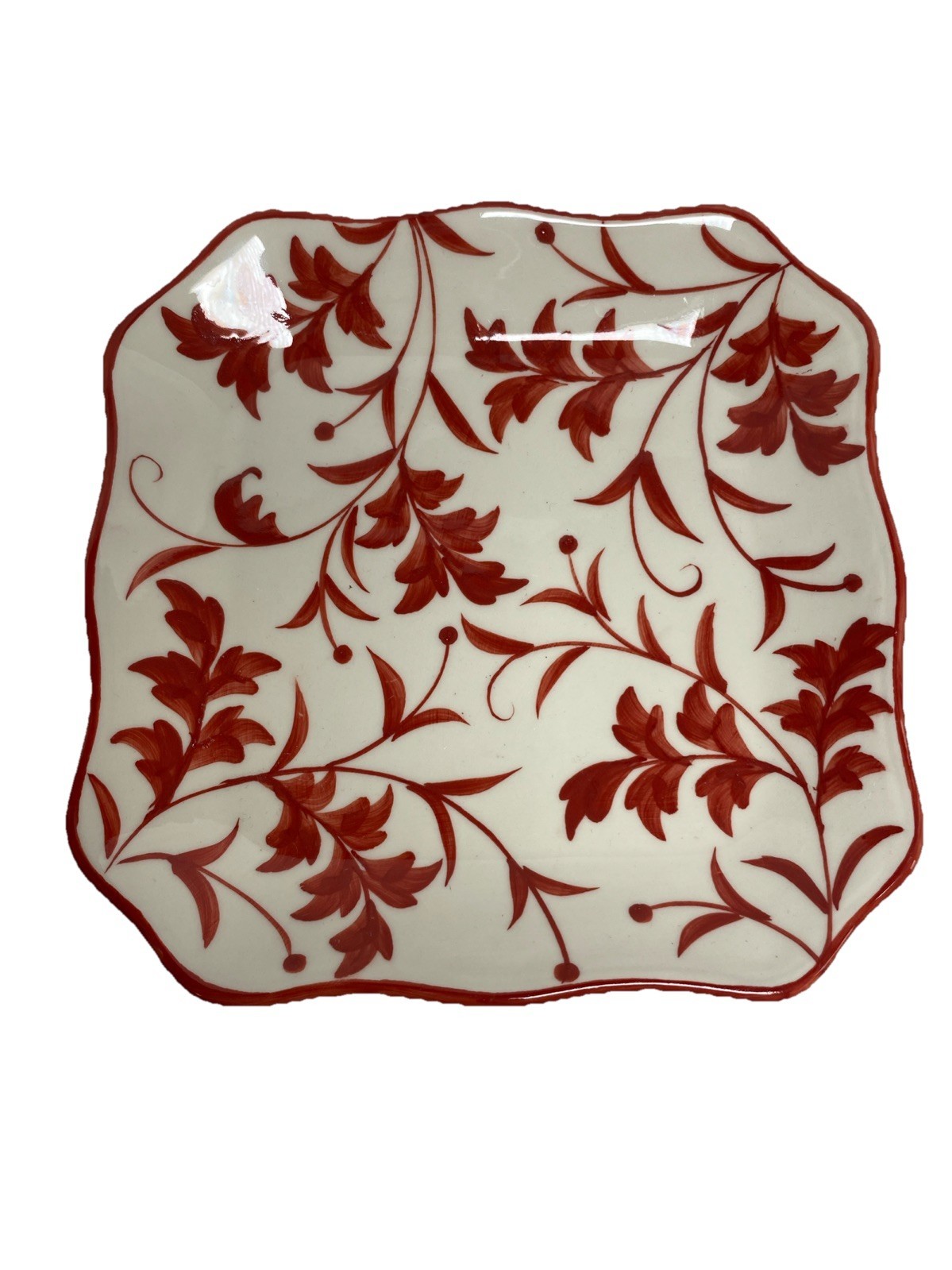 Hand Painted Square Plates Red/Ivory & Blue/Ivory 6"