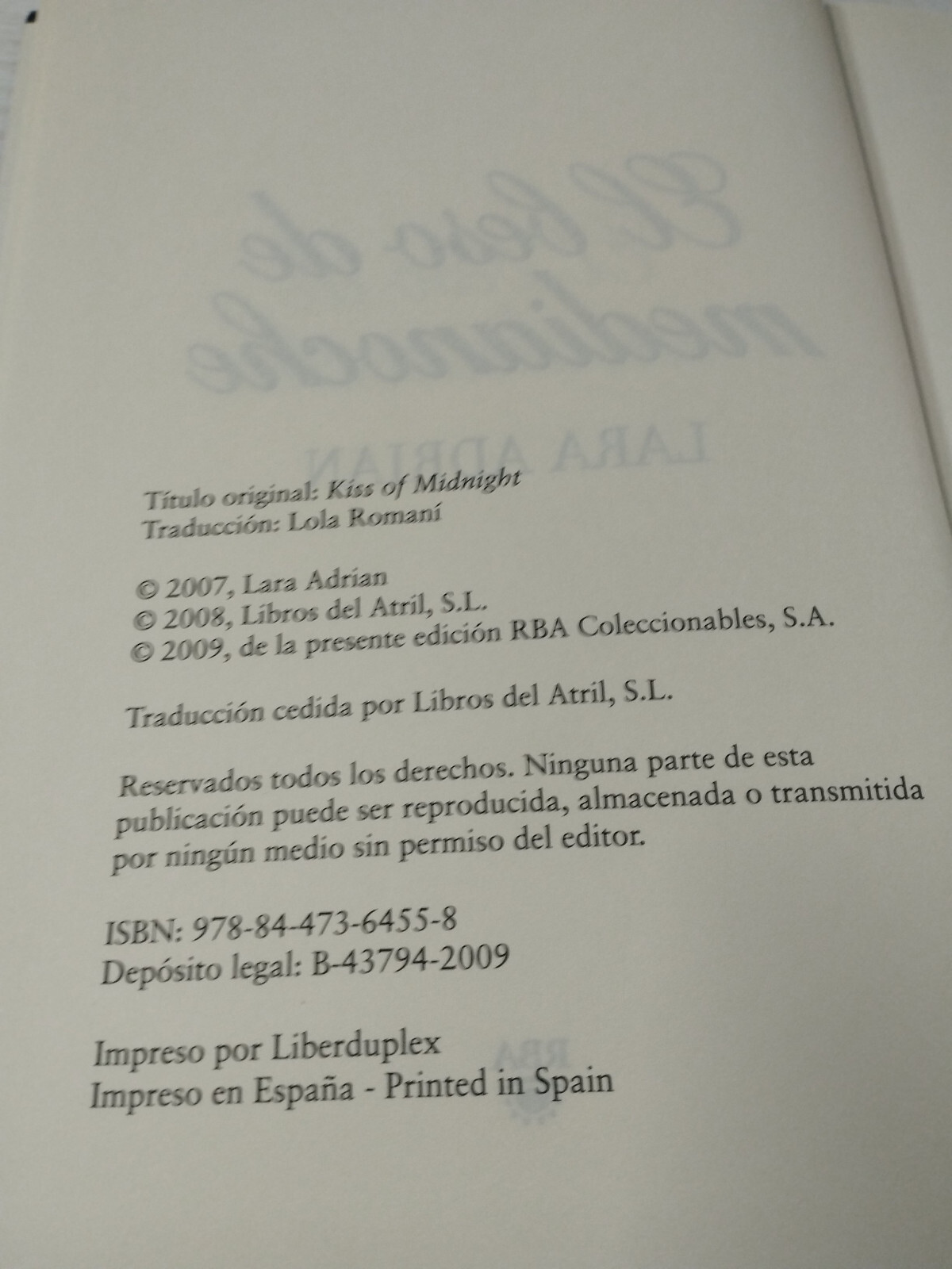 Il Bacio Della Mezzanotte Lara Adrian Romantica RBA 2009 - LIBRO Spagnolo AM