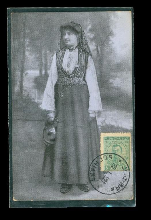 Vintage Postcard 1922 Cancel Bulgaria Woman in Ethnic Folk Dress.