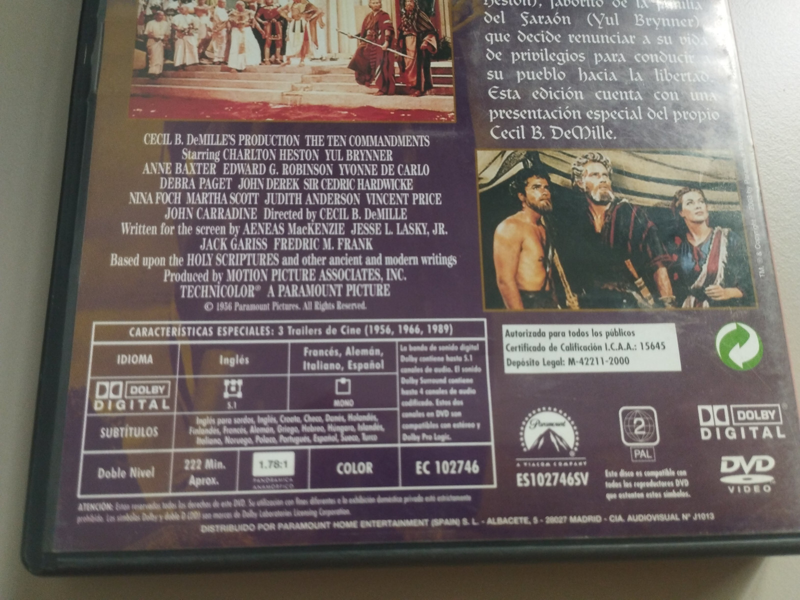 los Ten commandments de Cecil B demille - 2 x Spanish Spanish region 2 am