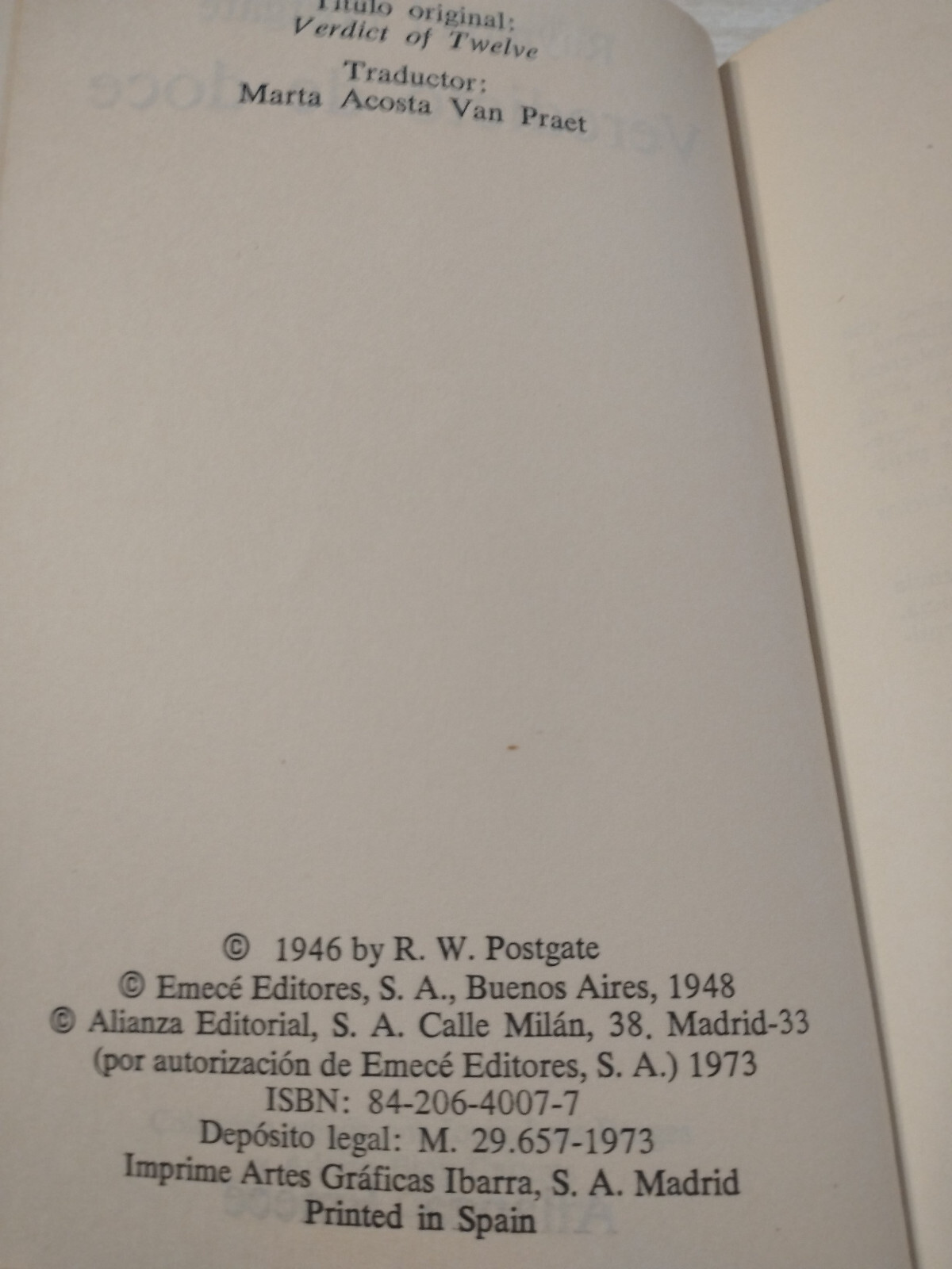Verdict of Twelve Raymond Postgate 1973 Emece - BOOK Spanish Am