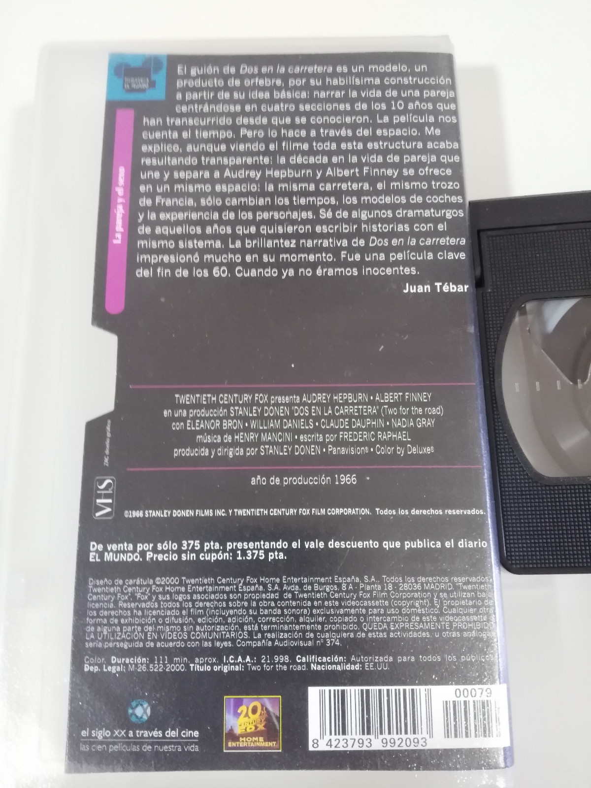 DOS SUR LA ROUTE DEUX POUR LE ROAD TAPE VHS COLLECTOR AUDREY HEPBURN BANDE VIDEO VHS DE ESPAGNOL DE COLLECTIONNEURS AUTHENTIQUES
