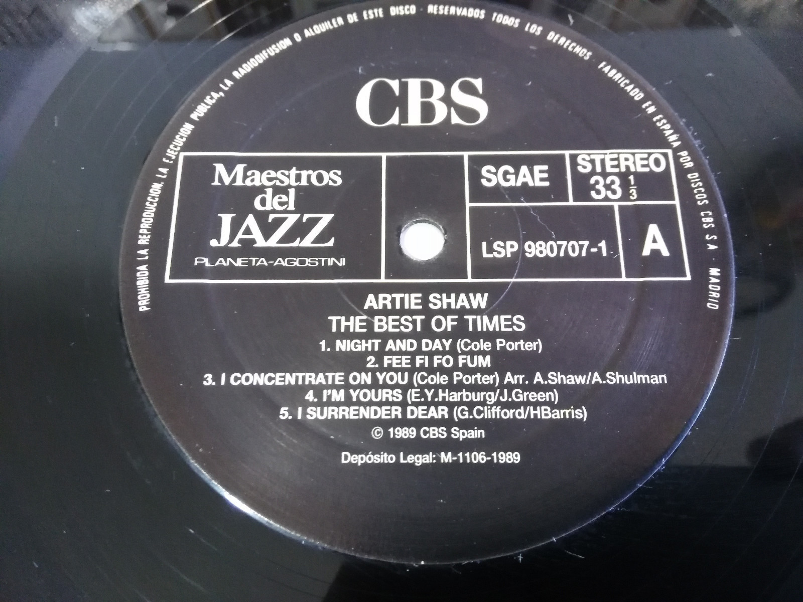 Artie Shaw The Best Of Times 1989 LP VINILO 12" Solo El Vinilo Sin Carpeta