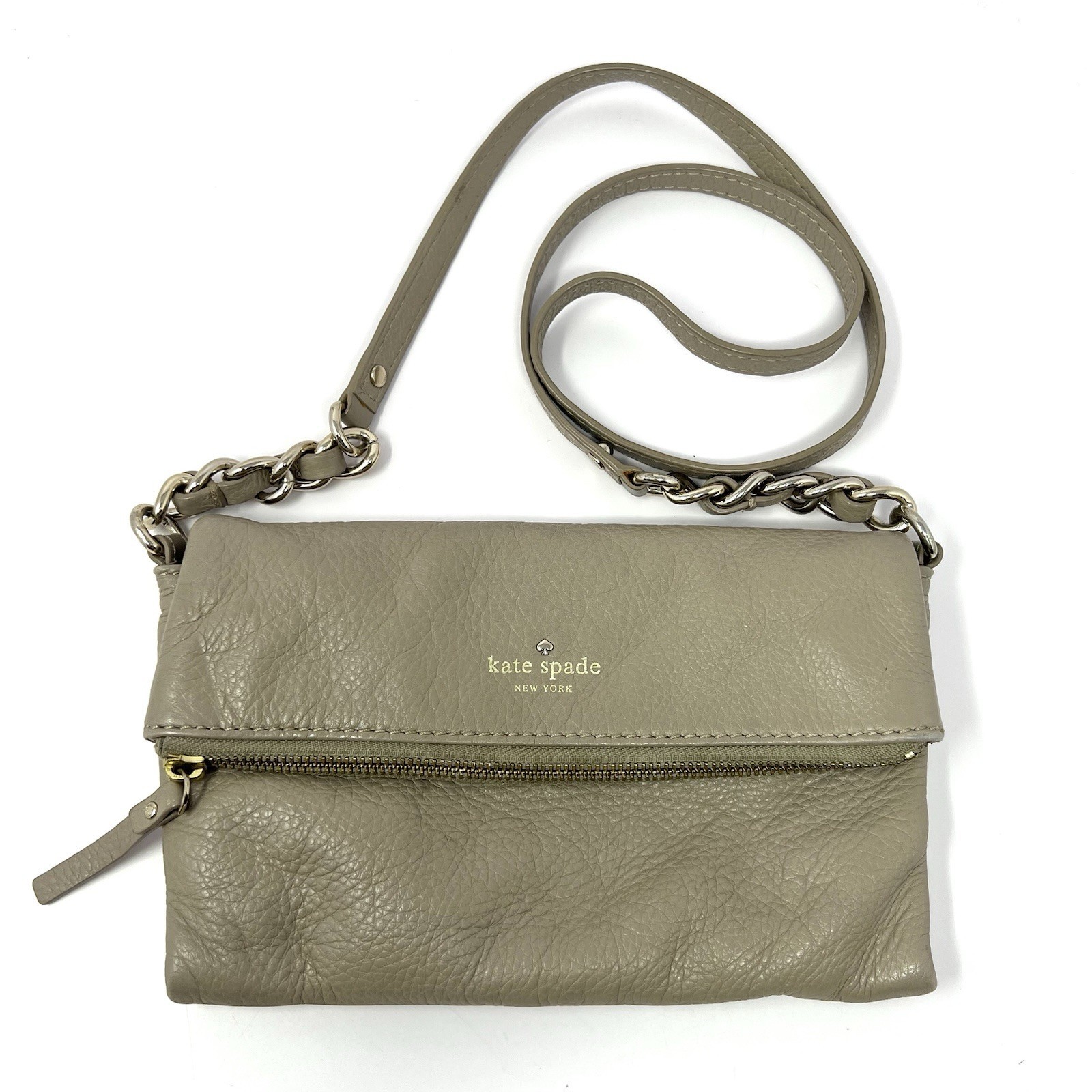 Kate Spade Womens Crossbody Fold Over Bag Tan Pebble Leather Gold Color Hardware