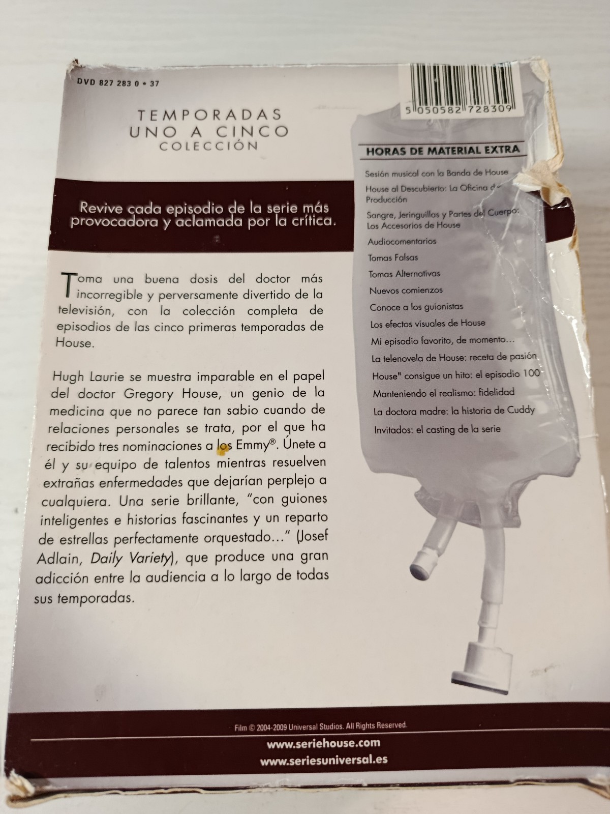 L'une de series les plus influentes de television moderne et idealepara marathons intensesde Drame medicalcon dosede Sarcasme, intelligence et humanite. Ce pack complet de cinco premieres saisonsesperfectopara Collectionneurs, fansde Hugh Laurie ou amoureuxdel Genre medical.