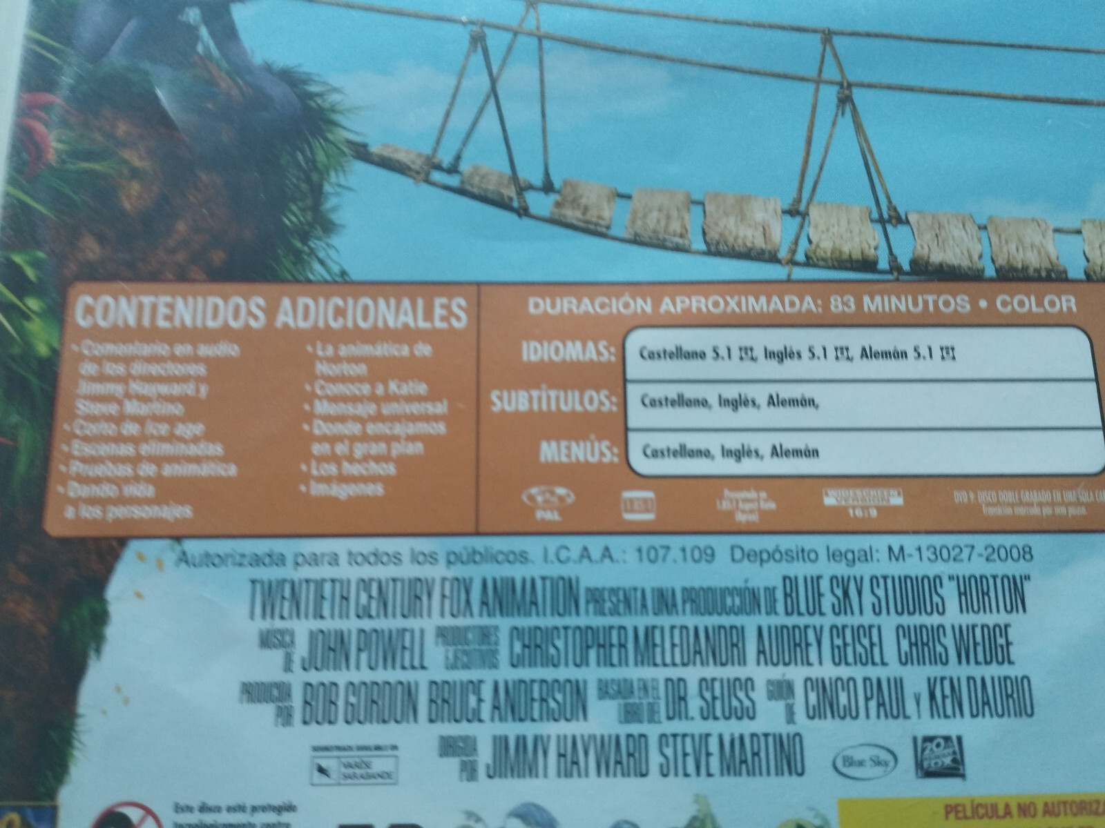 HORTON ANIMATION - DVD + Extras Españoles Aleman Region 2 am