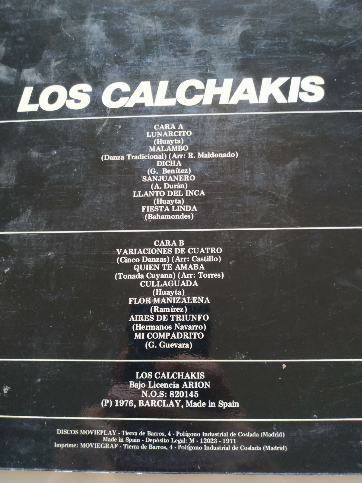 Los Calchakis La Chitarra India 1976 Barclay - LP 12" Vinilo - VG/VG