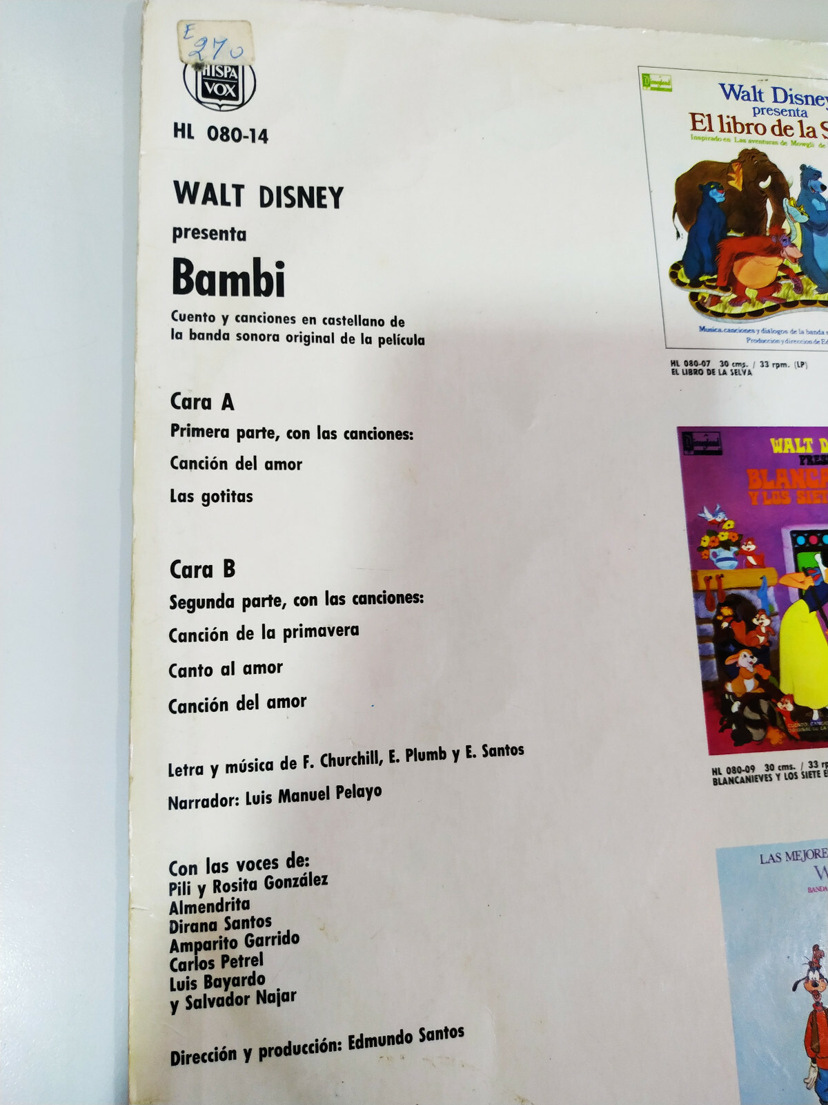 Bambi " Colonna Sonora WALT DISNEY IN Spagnolo 1991 Emi - LP vinilo 12 " VG/VG -