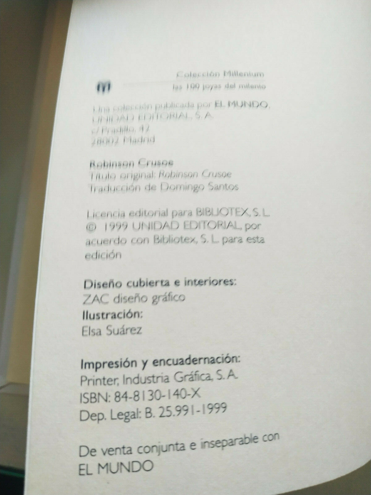 Robinson Crusoe Daniel Defoe Millenium 1999 - LIVRE espagnol