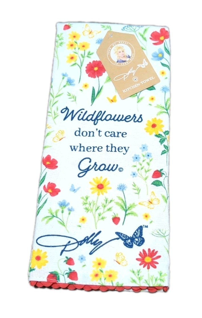 Lot 4x NEW Dolly Parton Kitchen Dish Towels Wild Flowers Sweet Tea Strawberry