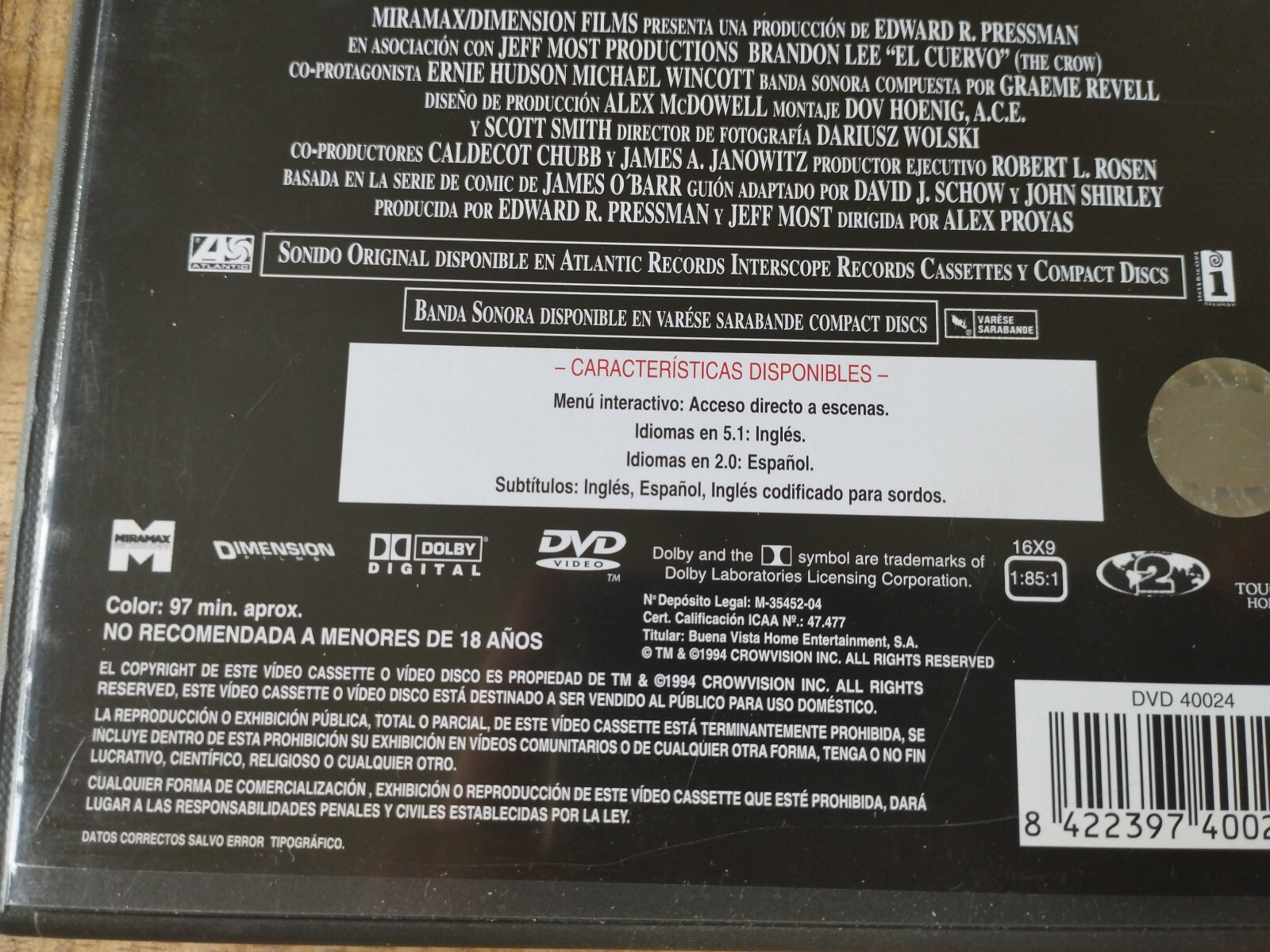 El Corvo Brandon Lee Alex Proyas - DVD and 50 similar items