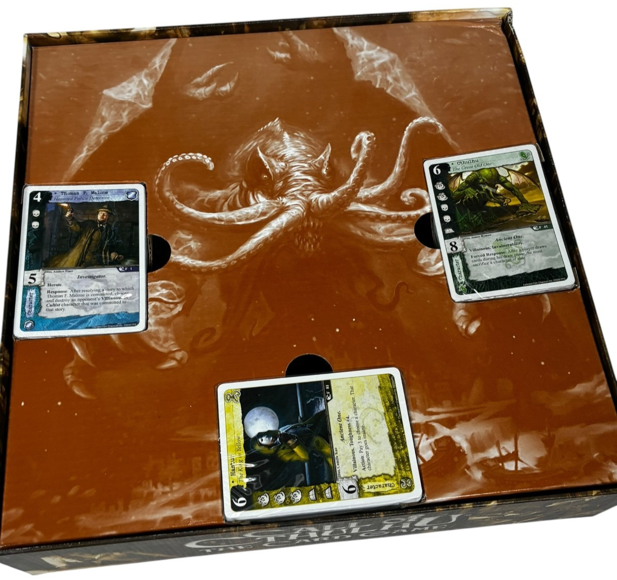 Call of Cthulhu: The Card Game is 2-player, customizable dueling game in which players command both human and monster factions.