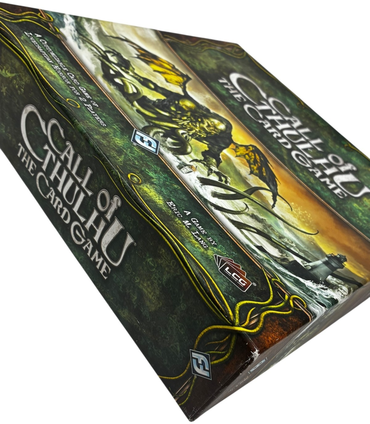 In Call of Cthulhu: The Card Game, players tak the roles of investigators, villians, and unspeakable horrors inspired by the dark mythos of H.P. Lovecraft. Agency detectives, Miskatonic University students and faculty, and the members of the mysterious Syndacite all join the fight against otherworldly beings including Cthluhu, Hastur, Yog-Sothoth, and Shub Niggurath.
