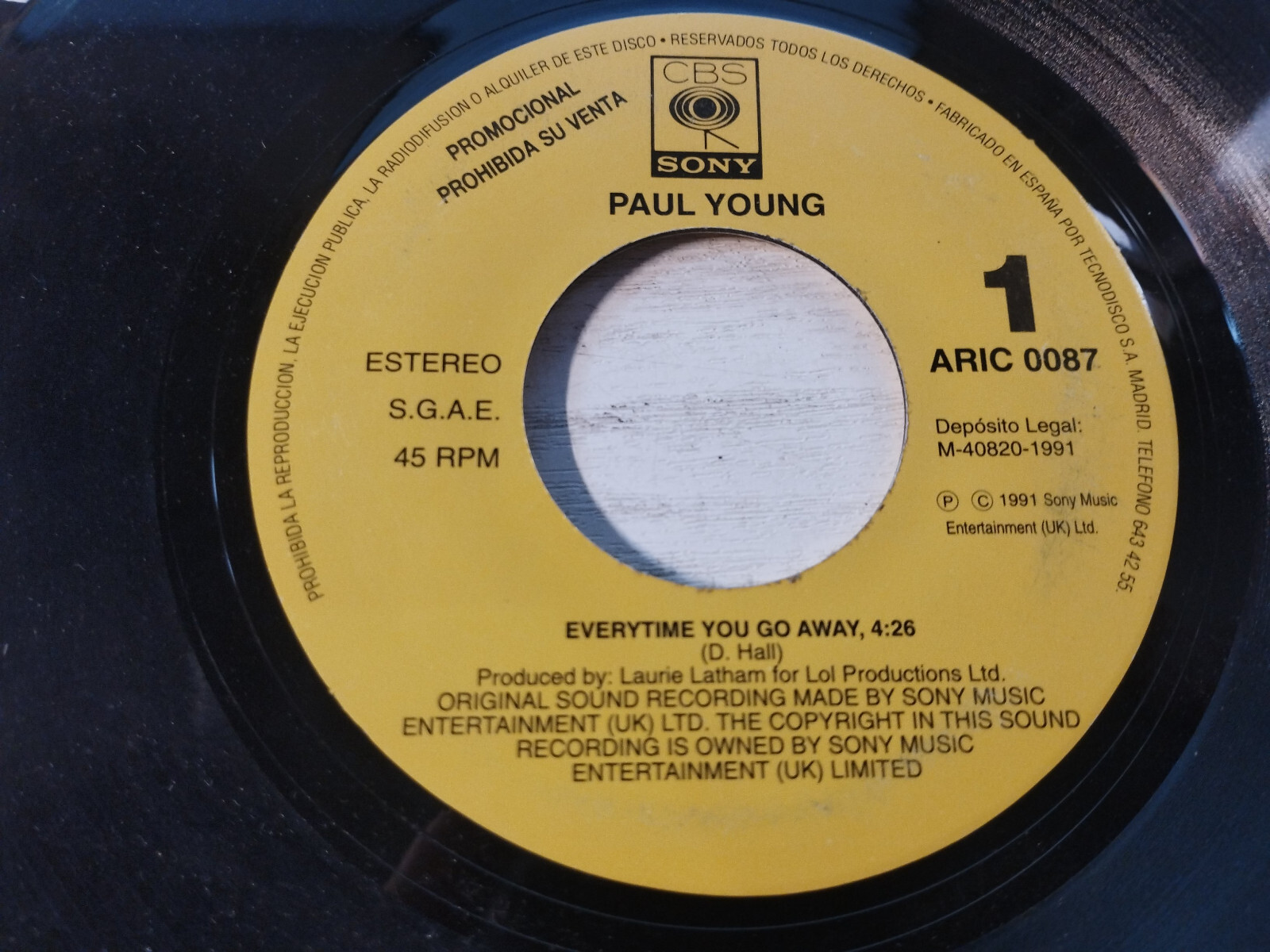 Paul Young Everytime You Go Away 1991 - Single LP vinyl 7 " VG/VG Promo