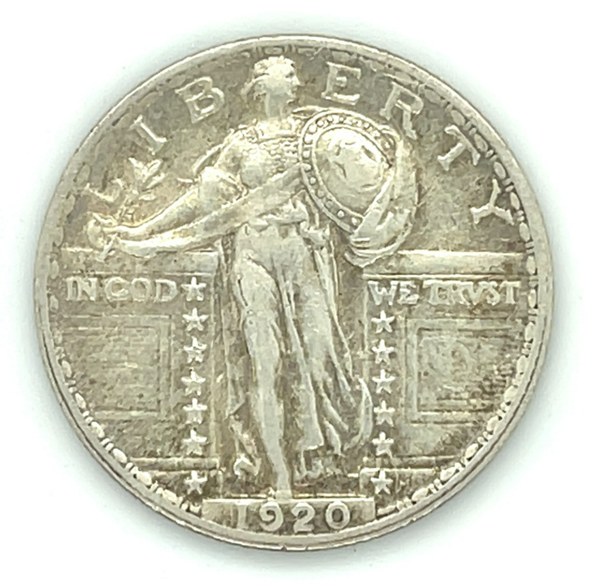 1920 25c Standing Liberty Quarter in condizione XF extra fine, tocco di tonificazione