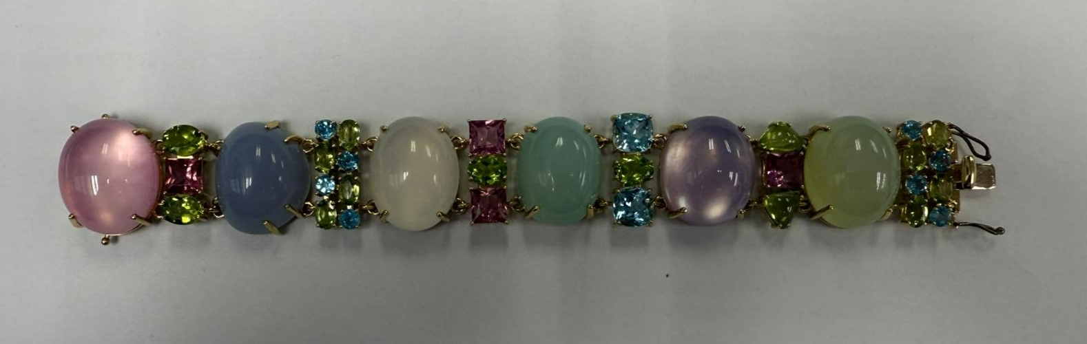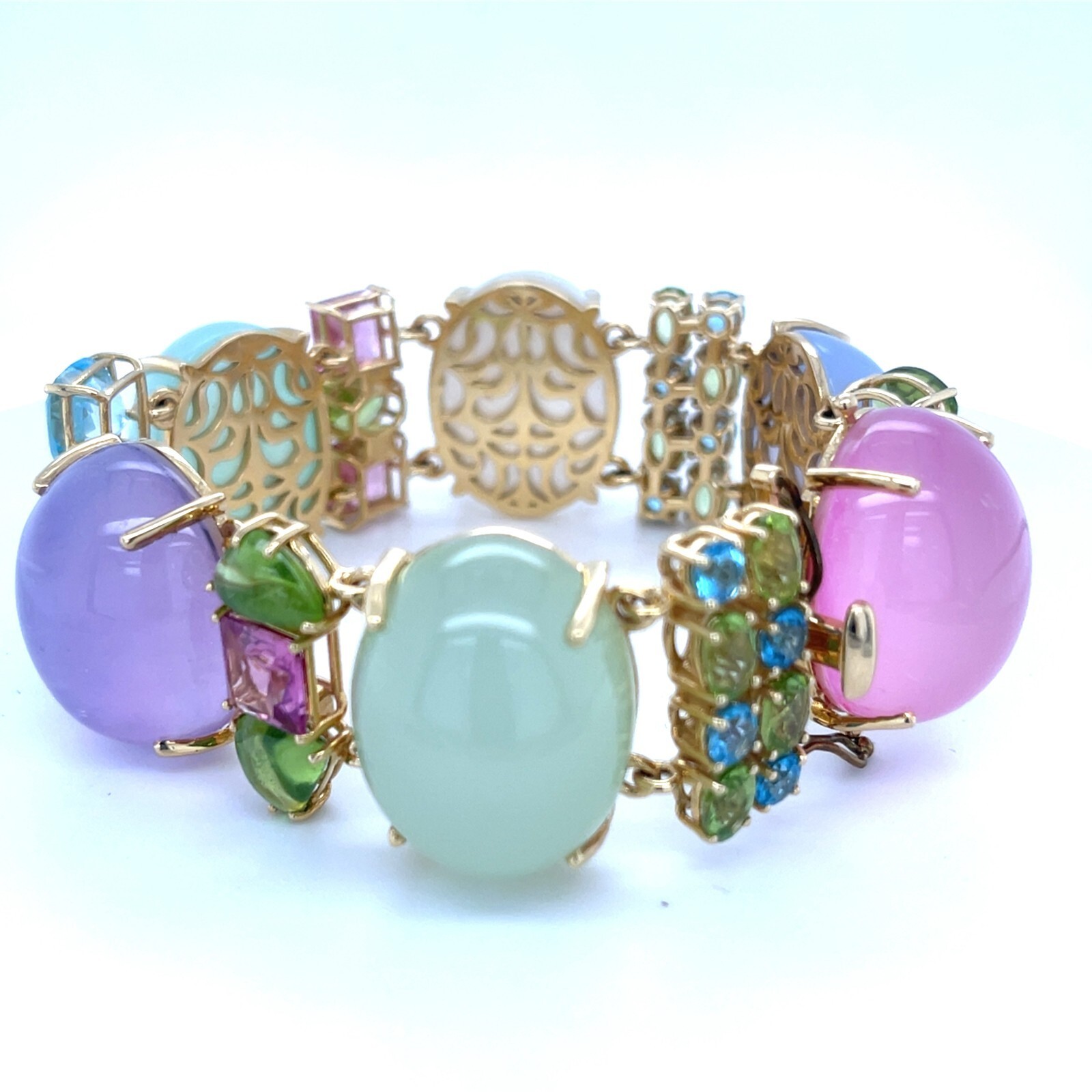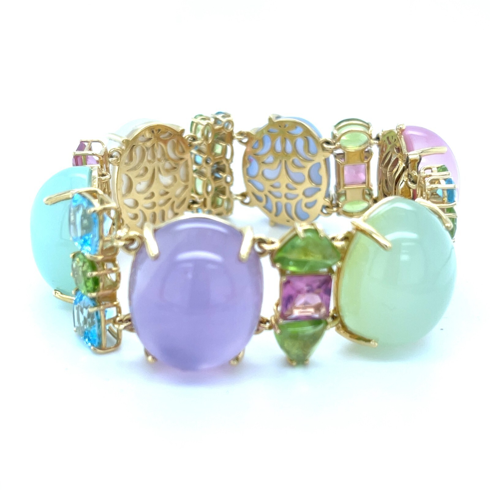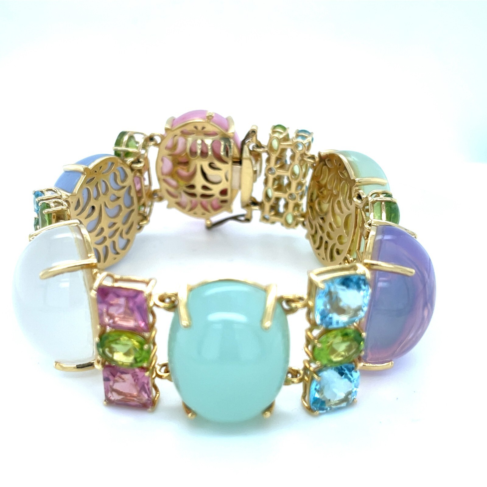 Wunderschones, einzigartiges pastelles halbprekisches Edelsteinarmband mit hellem Facetten Halbwichtig Edelsteinakzente