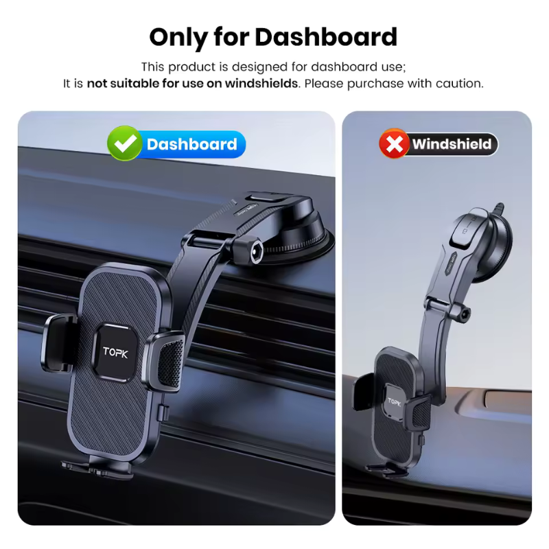 Keep your phone secure and accessible while driving with the TOPK Universal Car Phone Holder. Designed for convenience and reliability, it provides a stable mount for all smartphones, including iPhone, Samsung, and Google Pixel.