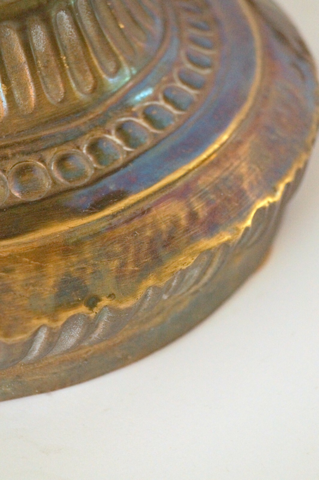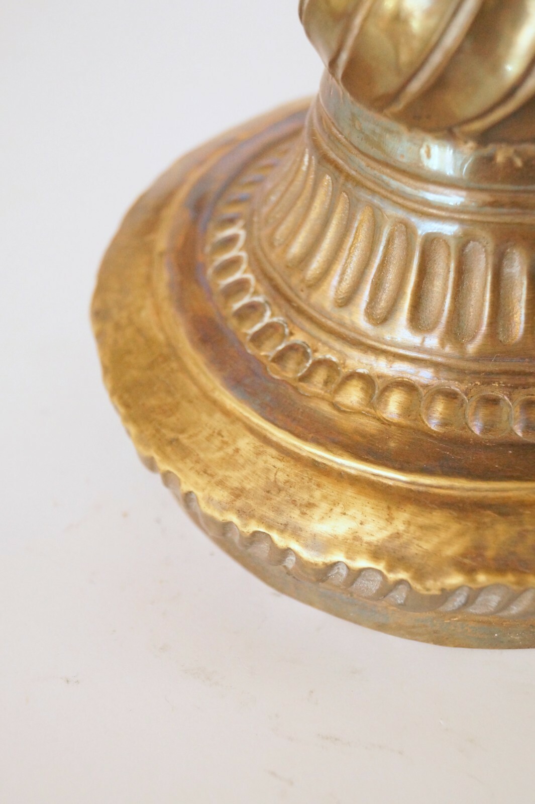 Elegant equipement de feuille de laiton avec des signes tres clairs d'age et d'utilisation.