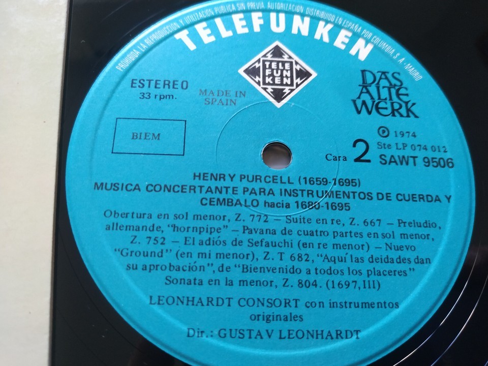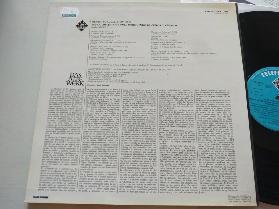 Purcell Music Concertante Strings Y Cembalo Sawt 9506 - LP 12 " vinyl VG/VG