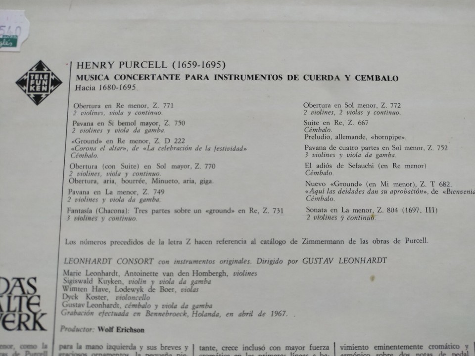 Purcell Music Concertante Strings Y Cembalo and 44 similar items