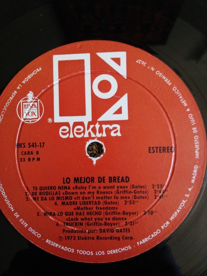 1.- BREAD: "LO MEJOR DE BREAD" LP ELEKTRA HKS 541-17 - 1972 SPANISH EDITION G+
