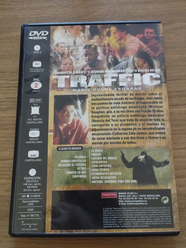 Traffic Michael Douglas Benicio del Toro Soderbergh DVD Español Ingles Region 2