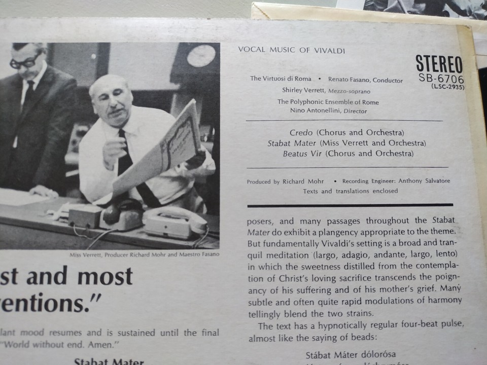 Vivaldi SB 6706 1966 Vocal Music Of Antonellini RCA - LP 12" Vinyl VG/VG- sho...