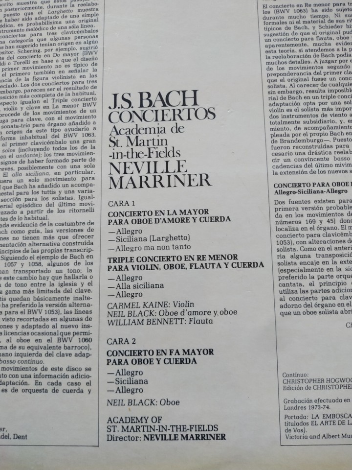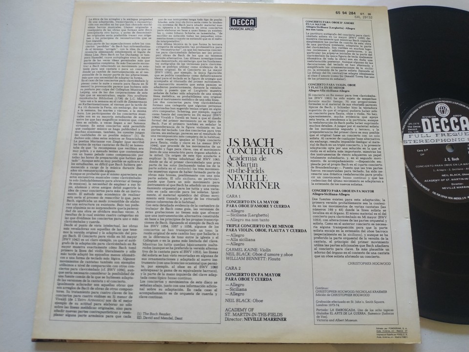 Bach Concertos Oboe D'amore Violin Flute Marriner 1981 - LP 12" Vinyl VG/VG