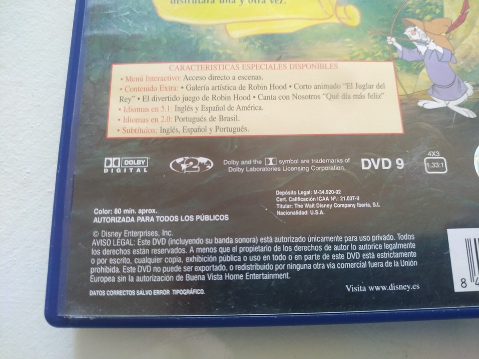 Robin Hood Los Clasicos De WALT DISNEY DVD + Extras Español Latino Ingles ESP Am