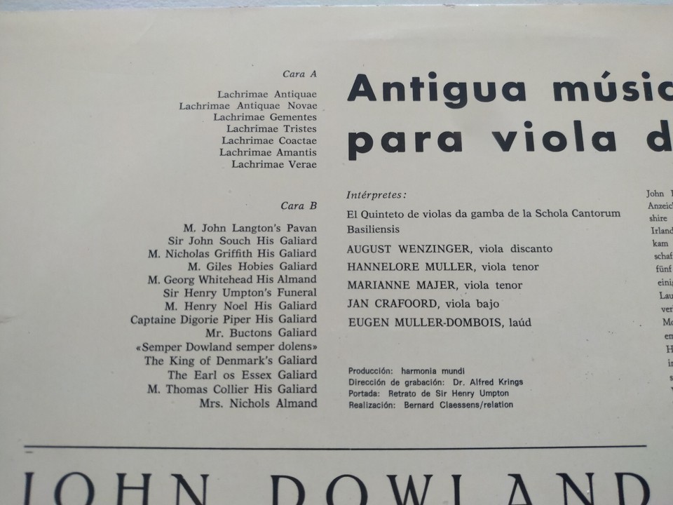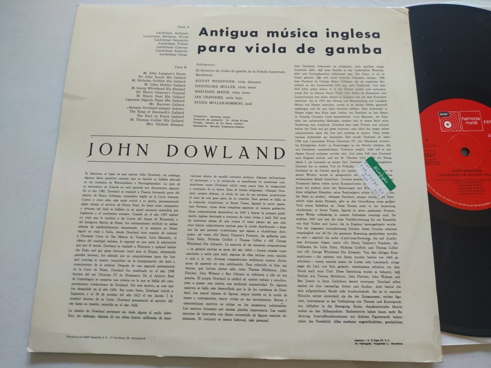 John Dowland Altenglishe Gambenmusik Viola da Gamba 1976 LP 12 " vinyl VG/VG