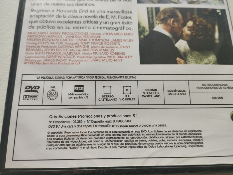 Regreso A Howards End Anthony Hopkins - DVD and 50 similar items