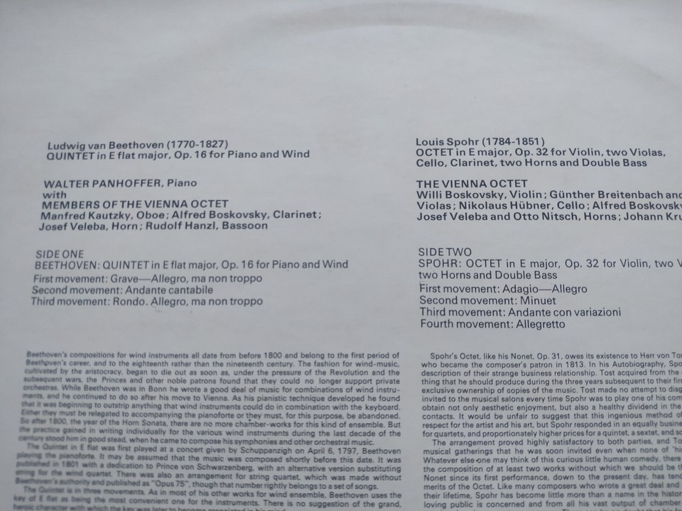Beethoven Quintet For Piano and Wind Spohr Panhoffer 1959 LP 12" Vinyl VG/VG ...