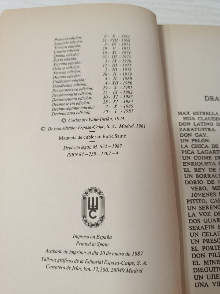 Imprime en Espagne par Espasa Calpe en 1987.
