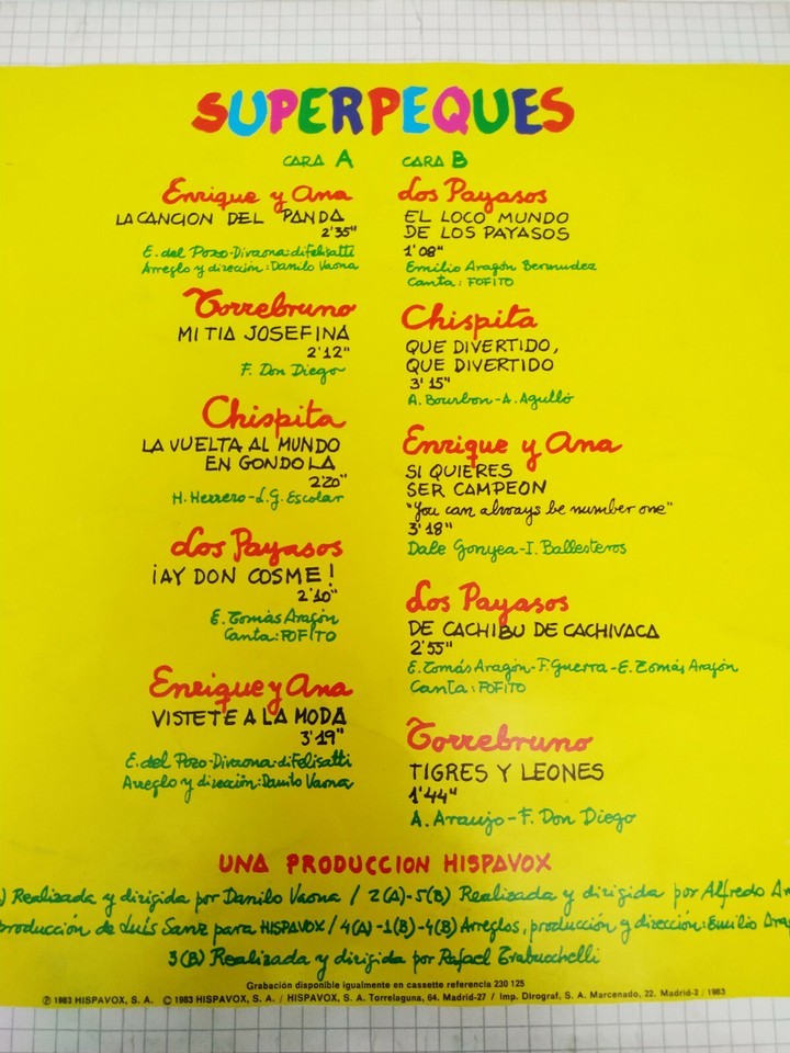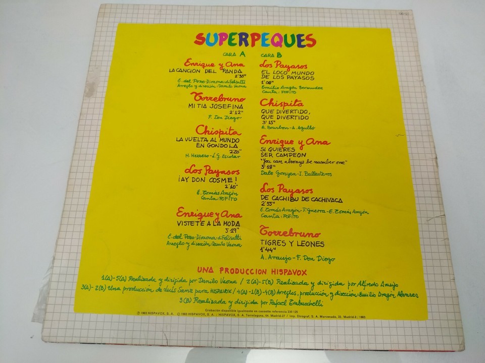 Superpeques, Torrebruno, los clowns de TV, Enrique and Ana, LPvinyl 12, 1983, musicinfantil , vintage disc, collecting, nostalgia,vinyl Retro, Spain, 80s, original edition