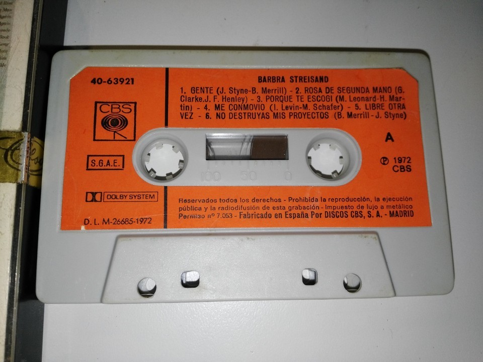 BARBRA STREISAND GRANDE SUCCESSOS - 1972 SPANISH ED PAPER LABEL TAPE CASSETTE...