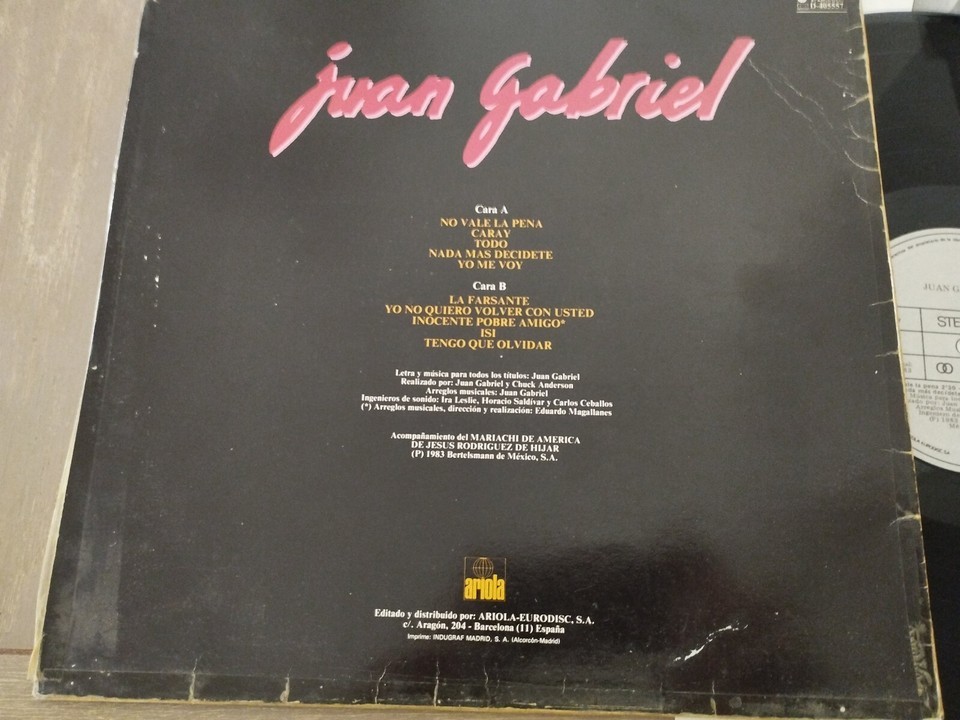 Juan Gabriel 1983 Ariola I-205557 Exitos Spain Pres - LP 12" Vinyl VG/VG