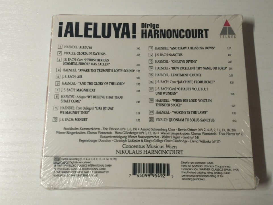 Hallelujah! Nicolaus Harnoncourt Bach Handel Vivaldi 1994 - New CD