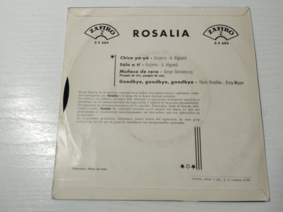 ROSALIA chica YE YE ONLY TO YOU 1965 ZE684 SAFIRO - SINGLE LP vinyl 7 "VG/VG