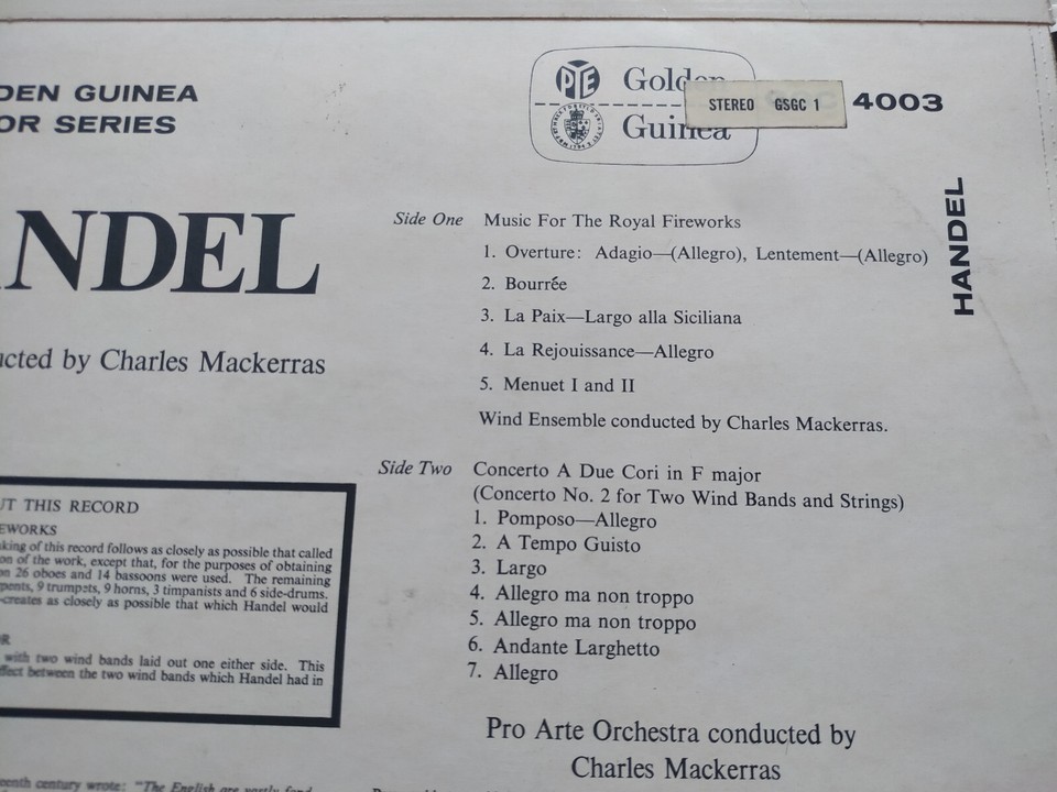 Handel Music for The Royal Fireworks Mackerras 1959 Pye - LP 12 " vinyl VG/VG AM