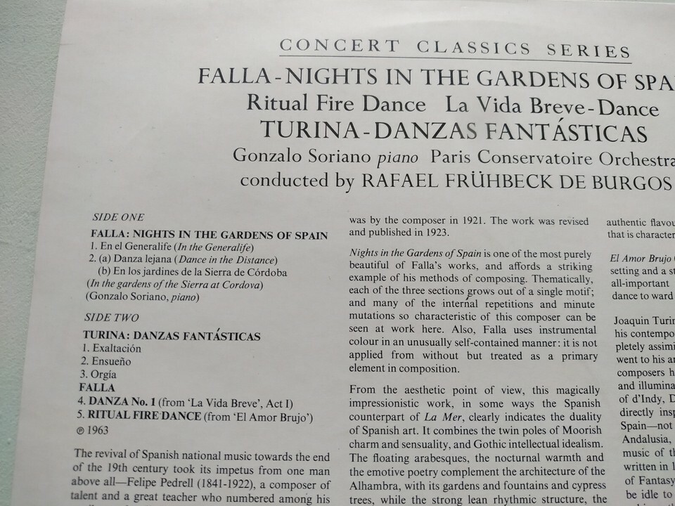 FALLA Nights In The Gardens Spain Turina De Burgos 1963 - LP 12" Vinyl VG/VG Am