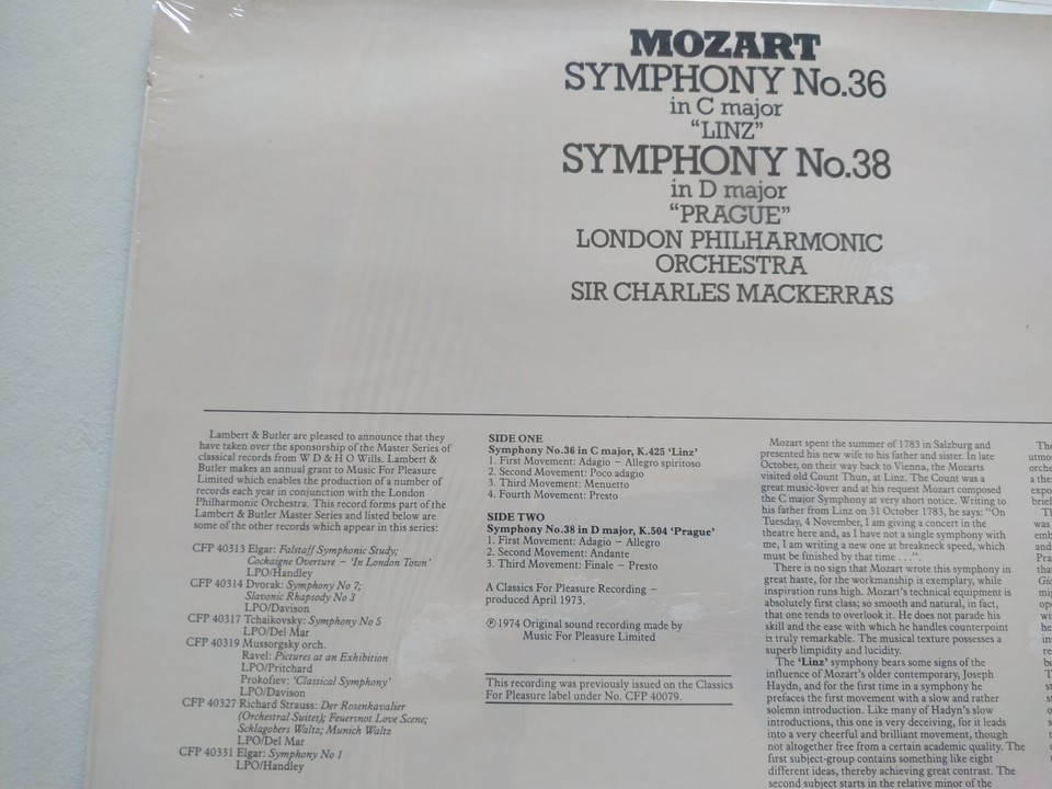 Mozart Symphony no 38 36 Prague Linz Mackerras 1974 CFP - LP 12 " vinyl VG/VG