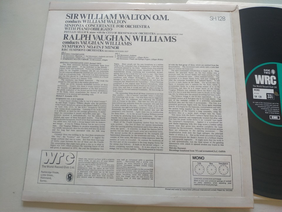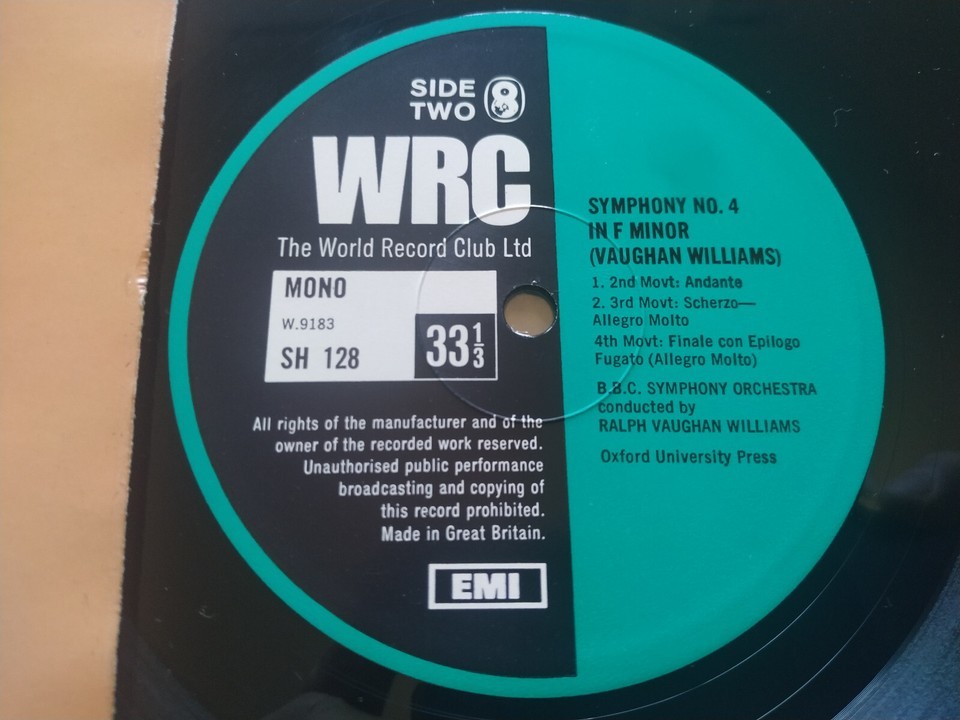 Vaughan Williams Conducts Symphony No 4 EMI SH 128 MONO LP 12" Vinilo VG/VG Am