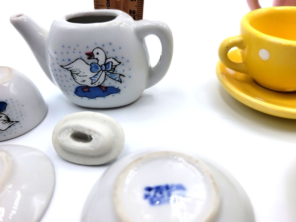 2 Tea Sets Children Tiny Pokey-Dots Doll House Toy Size AS IS