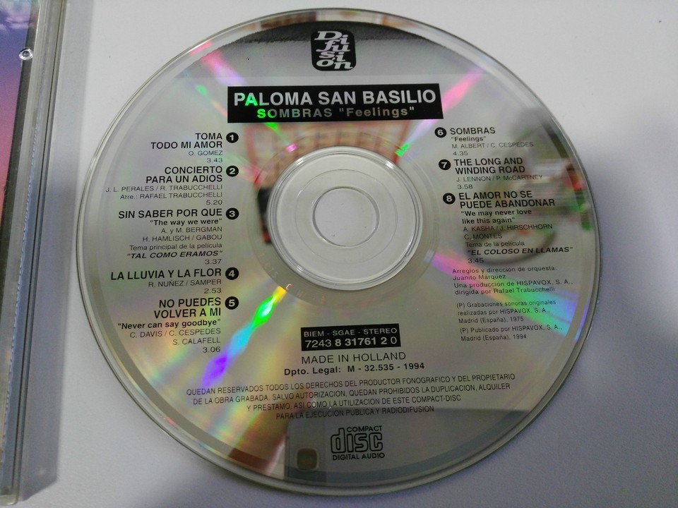 PALOMA SAN BASILIO SOMBRAS FEELINGS CD 1975-1994 DIFUSION HOLLAND EDITION