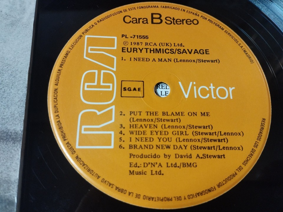 EURYMICS SAVAGE RCA PL -7155 1987 SPAIN First Press - LP vinyl 12 "VG/VG