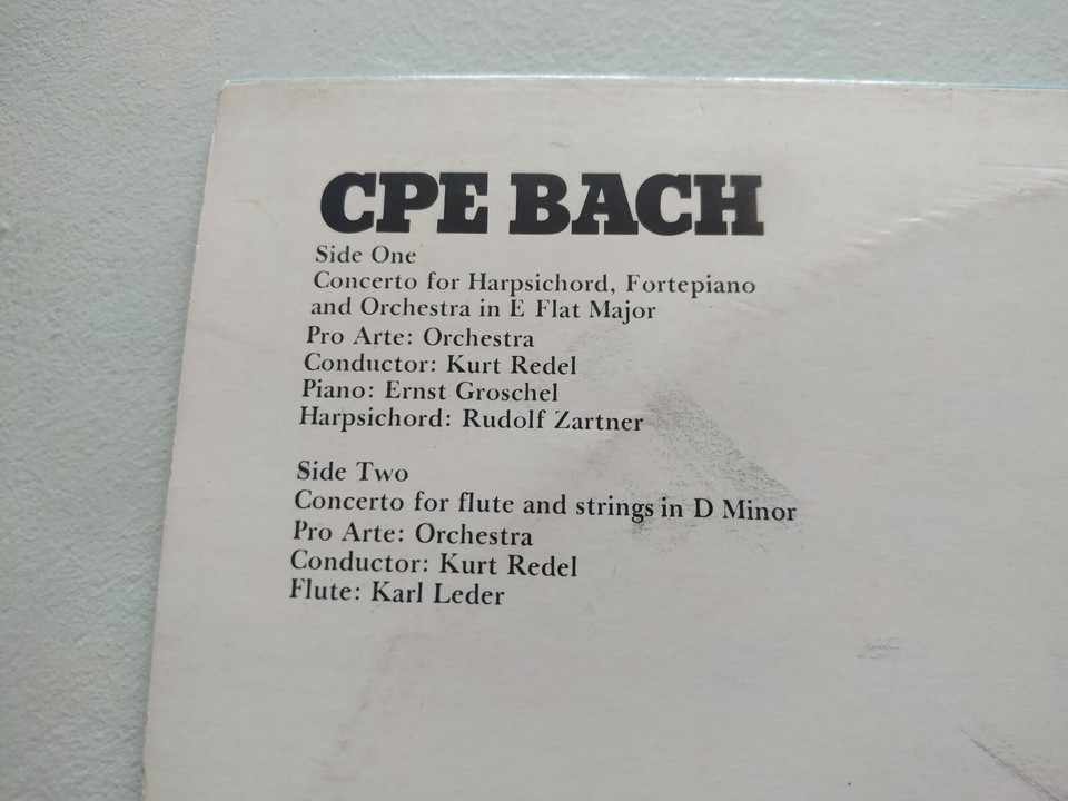 CPE Bach Concertos in E Flat Major Kurt Redel 1970 - LP 12" Vinilo VG/VG