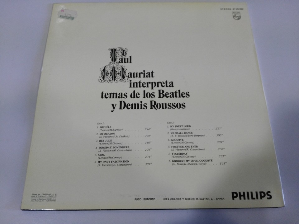 PAUL MAURIAT INTERPRETA TEMAS THE BEATLES DEMIS ROUSSOS LP VINILO 12" VG/VG 1975