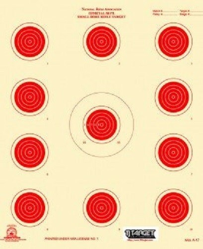 A-17 NRA Official 50 Foot small bore rifle target, (red) (100 count) Tagboard
