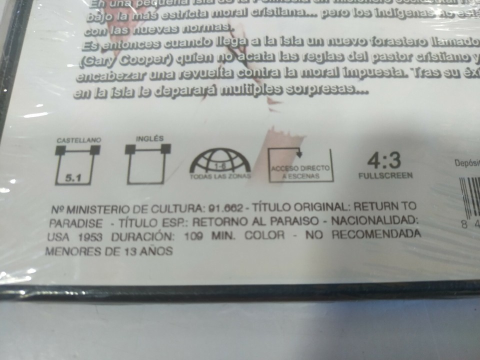 Retour Al Paradis Gary Cooper John Hudson - DVD Reg All Espagnol Anglais Neuf 2T