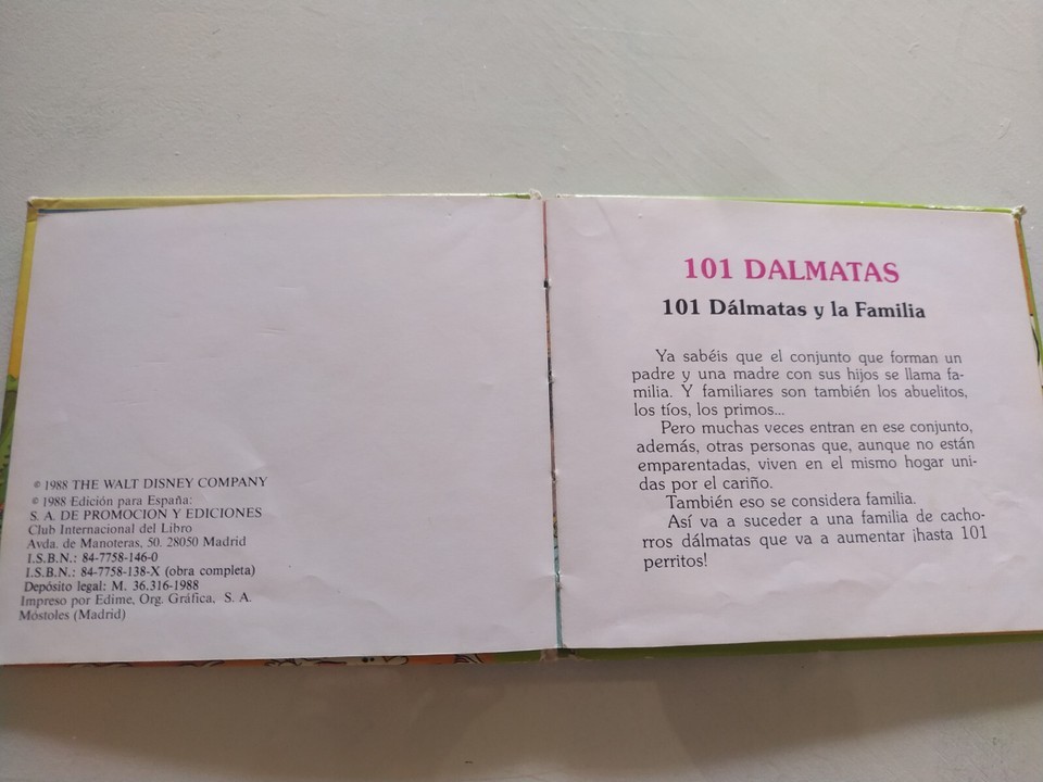 101 Dalmatas y la Familia Walt Disney 1988 - LIBRO Cuento Español